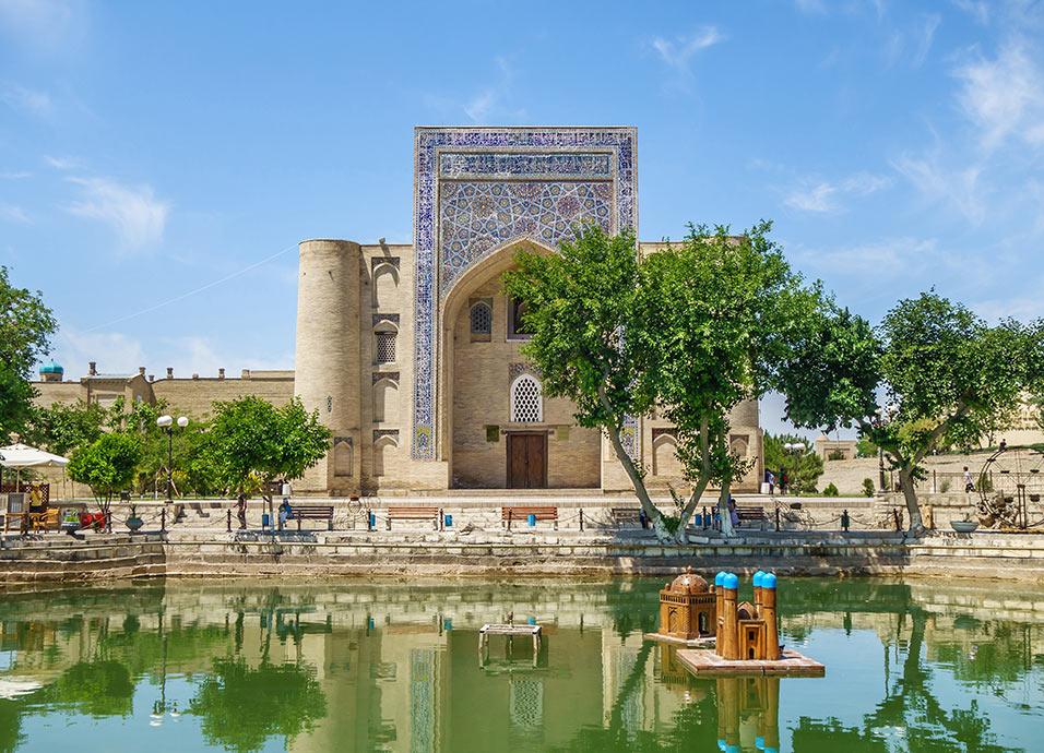 Desayuno. Comienzo de la visita por el Mausoleo de los Samánidas y Mausoleo y Manantial Sagrado Chasmai Ayub, también conocida como “la fuente de Job”; Mezquita Bolo-Hauz (exterior); Ciudadela Ark. Almuerzo en restaurante local. Visita al Complejo Arquitectónico Lyabi Hauz, el corazón de cuidad que incluye Madraza Kukeldash (visita exterior) y Madraza Nodir Devon Begi, construidos alrededor del mayor estanque de la ciudad, y la mezquita más antigua de Bukhara la Mezquita Magoki Attory (visita exterior). Después se pasará por tres mercados, el complejo de las cúpulas conocido como la Primera (Toki-Sarrafon), Segunda (Toki-Telpakfurushon) y Tercera Cúpulas (Toki-Zargaron), son unos recintos abovedados a los que se unían un gran número de galerías para comercio y talleres artesanos. En ruta visita del exterior de la Madraza Ulughbek y de la Madraza Abdulaziz-Khan. Degustación entre las visitas de un té o café en una terraza. La visita finalizará en la plaza más emblemática de Bukhara. Complejo Arquitectónico Poi-Kalon donde esta Minarete Kalon, Mezquita Poi Kalon, una de las más grandes del Asia Central; Madraza Miri Arab (visita exterior). Alojamiento