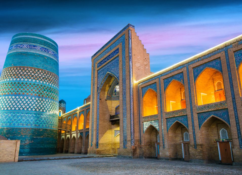 Desayuno. Traslado al aeropuerto para salir en avión con destino a Urgench. Llegada y traslado a Khiva situado a 30 km. Visita al Complejo Arquitectónico Ichan-Kala: Minarete Kalta Minor, Madrasa Mokhamed Amin Khan convertido en hotel, Castillo Kunya Ark, Madrasa Mohamed Rahim Khan, Mezquita Juma. Almuerzo en restaurante local. Por la tarde visita del exterior del MInarete y Madrasa deIslom Khodia, el mausoleo de Pakhalavan, y el Palacio Tash Hovli y su harem, para terminar en al Bastión de Oq Sheykh Baba para ver la puesta de sol, donde salen las mejores fotos de Khiva. Alojamiento.