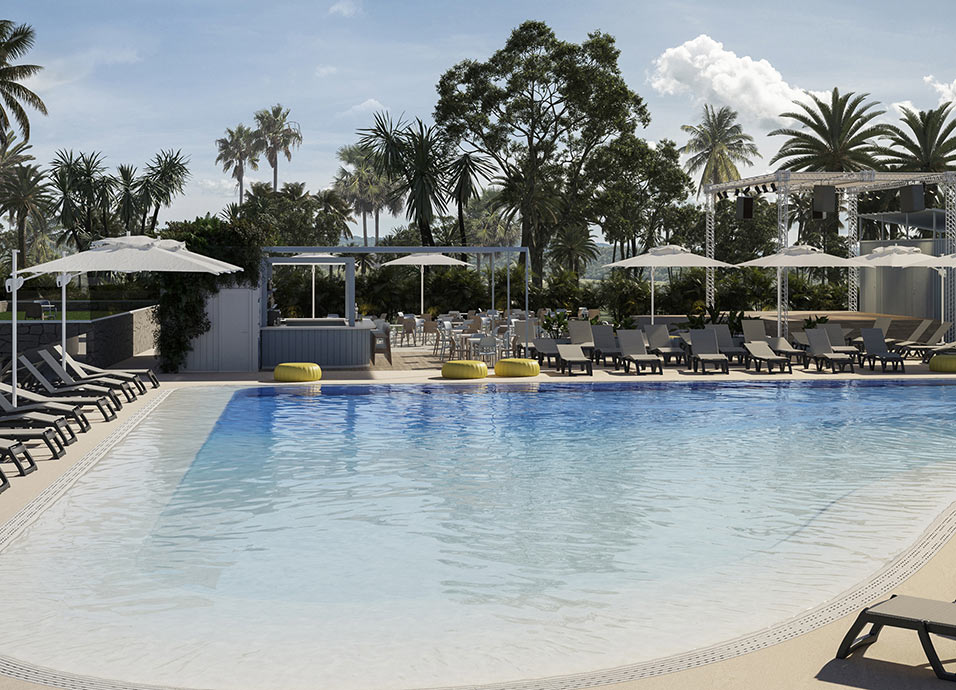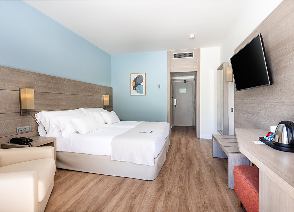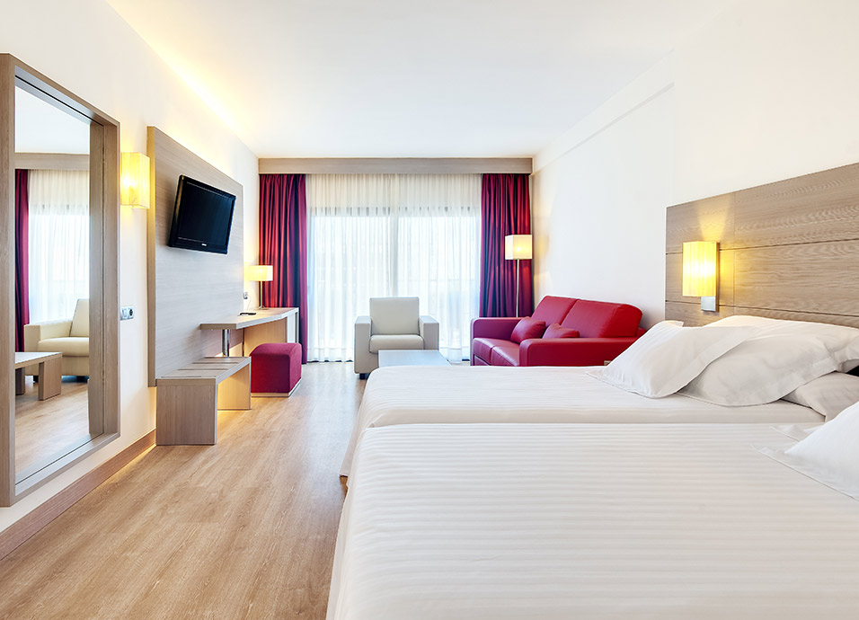 Instalaciones: restaurante buffet completamente reformado, 2 pool bar, 2 piscinas y 2 piscinas para niños, club infantil, parque infantil, zona lúdica, servicio de lavandería, solárium y gimnasio. Box de CrossFit al aire libre con entrenador personal. Wi-Fi de alta velocidad.