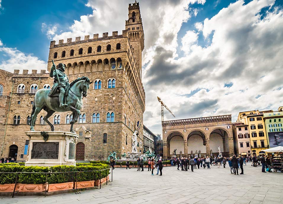 Desayuno. Visita panorámica a pie empezando en la Piazza della República, continuación hacia la Loggia del Mercato y el Ponte Vecchio. Pasando por la Academia dei Georgofili y el Piazzale degli Ufizi, se llegará a la Piazza della Signoria, donde se encuentra el Palazzo Vecchio y la Logia de las Lanzas. Termina el paseo en la Piazza San Giovanni, donde se levanta el Duomo, el Baptisterio y del Campanario de Giotto. Tarde libre. Alojamiento.