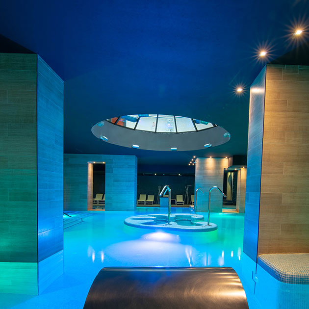 Piscina Termal con agua mineromedicinal, circuito de contrastes San Baudelio y tratamientos en cabinas: masajes relajantes, terapéuticos y estéticos, peelings, envolturas, bañeras de hidromasaje y burbujas, aromaterapia, ducha Vichy a 2 y 4 manos, ducha circular, inhalaciones, aerosoles y tratamientos de belleza facial y corporal.