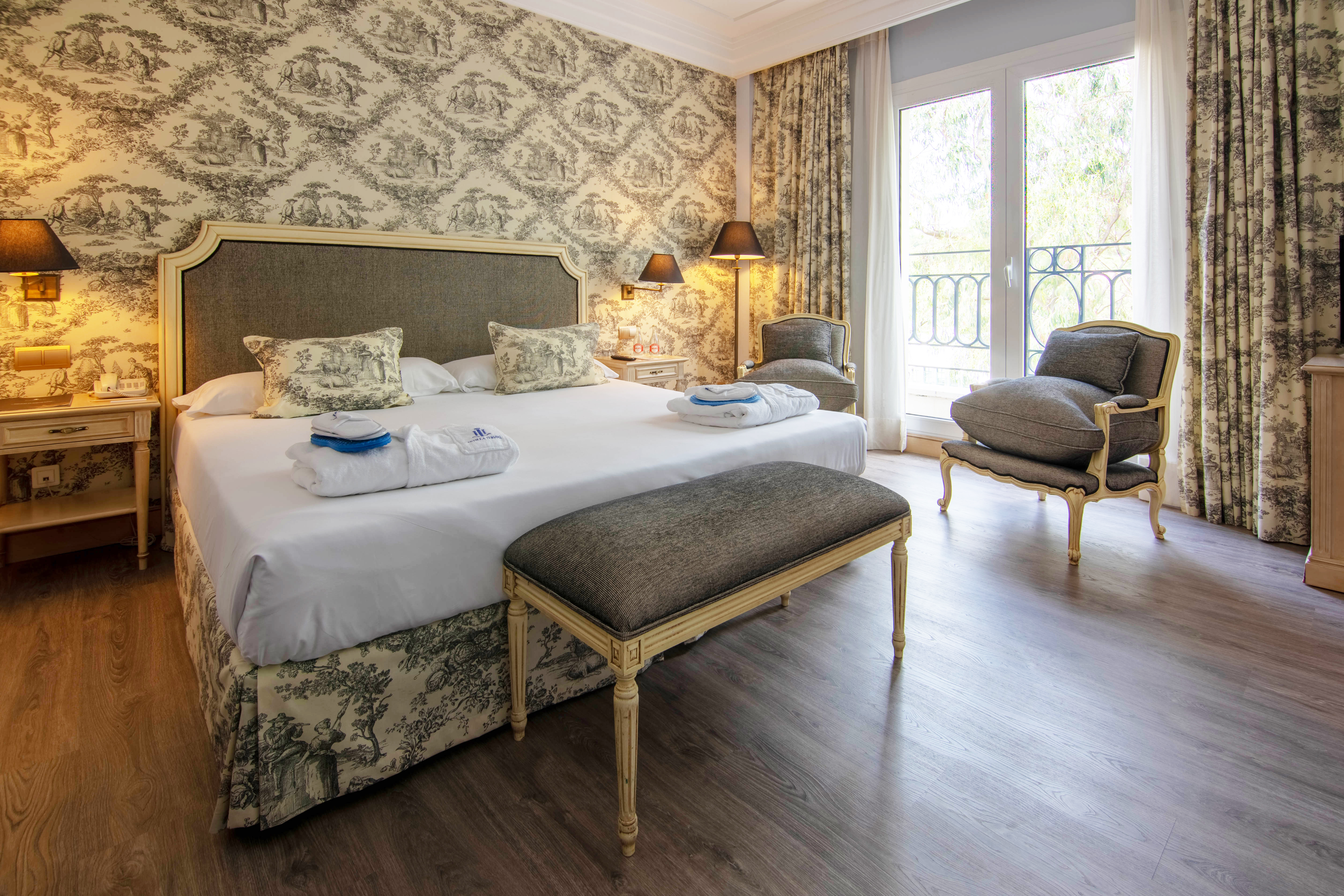 Instalaciones: bar, restaurante, zonas ajardinadas, capilla privada, piscina exterior, tienda de regalos, garaje, sala infantil, gimnasio y 5.000m2 de instalaciones termales: cabinas de masaje, estética, envolturas, presoterapia y maniluvio–pediluvio, bañeras, duchas y chorros y Balnea Infantil.