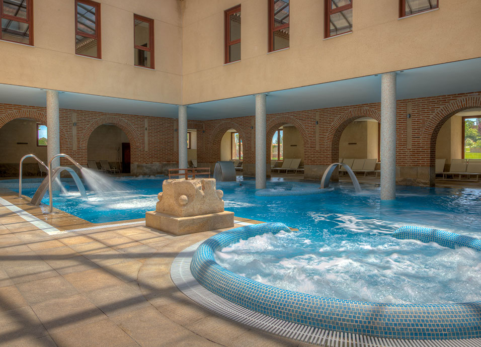Claustro Termal: una piscina interior y otra exterior de agua termal mineromedicinal.