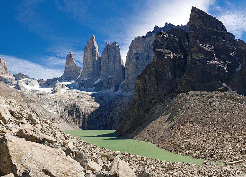 Desayuno. Excursión de día completo con almuerzo o picnic (según la temporada) al Parque Nacional Torres del Paine y la Cueva del Milodón. Declarado por la UNESCO, “Reserva Mundial de la Biosfera”, famoso por sus formaciones montañosas, entre las que destacan los “Cuernos del Paine” y las “Torres del Paine”. Glaciares, lagos y lagunas, ríos y saltos de agua, además de una variada flora y fauna prometen recorridos inolvidables. Regreso al establecimiento. Alojamiento.