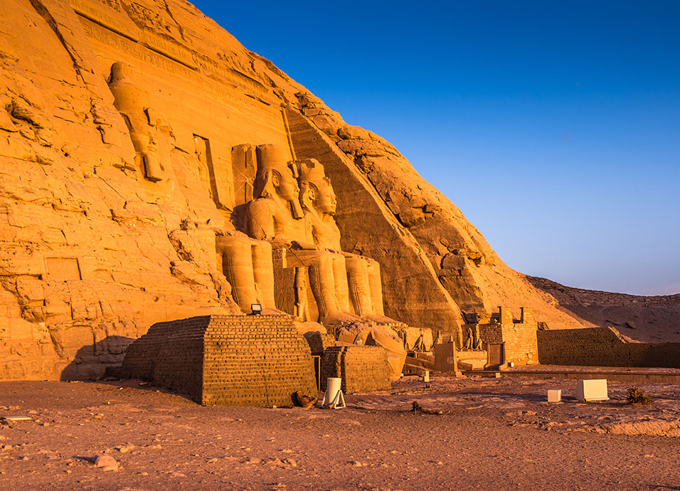 Desayuno a bordo y desembarque. Traslado por carretera de aproximadamente 3 horas a Abu Simbel. Llegada y traslado al hotel. Almuerzo. Por la tarde, visita a los majestuosos templos de Abu Simbel. Por la noche, asistencia al espectáculo de luz y sonido en los Templos. Cena y alojamiento.