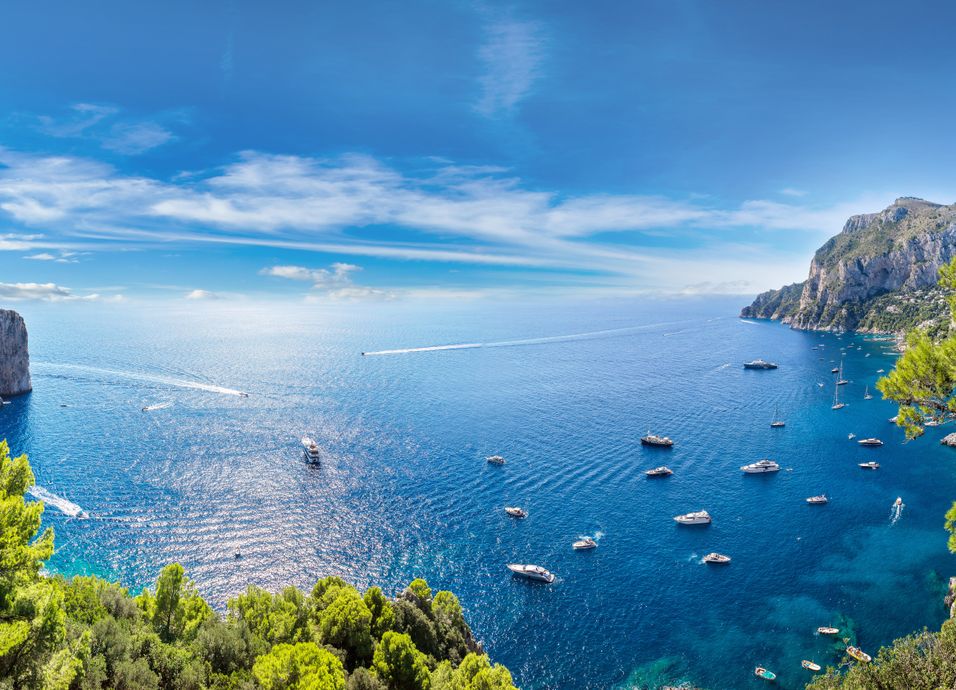 Desayuno. Salida hacia el puerto de Sorrento para embarcar en ferry regular hasta la magnífica isla de Capri, lugar de descanso de emperadores romanos, que sorprende por su paisaje de farallones y grutas. Destacan la Marina Grande y los múltiples puntos escénicos desde donde se disfruta de espectaculares vistas. Almuerzo libre. Regreso en Jet Foil regular a Sorrento. Cena y alojamiento.