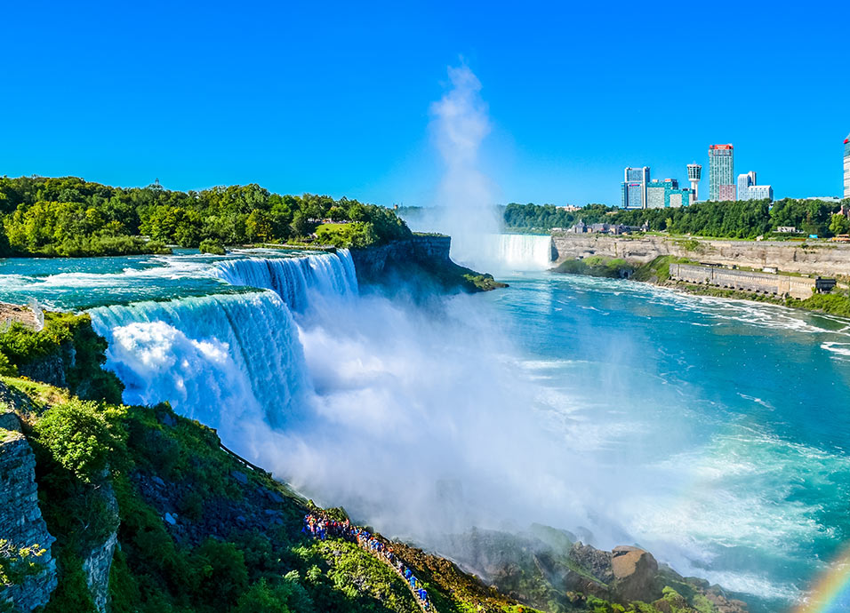 Desayuno. Salida para visitar la ciudad de Toronto, capital económica del país: recorrido por el antiguo y nuevo City Hall, el Parlamento, el barrio Chino, la Universidad de Toronto, la Torre CN (subida opcional). Continuación hacia Niagara para conocer las cataratas del Niágara. Paseo en barco (disponible del 15 de Mayo al 15 de Octubre, fuera de estas fechas, reemplazado por túneles escénicos.) hasta llegar al corazón de las cataratas. Tiempo libre para explorar Niágara y ver las cataratas iluminadas por la noche. Alojamiento en Niágara.