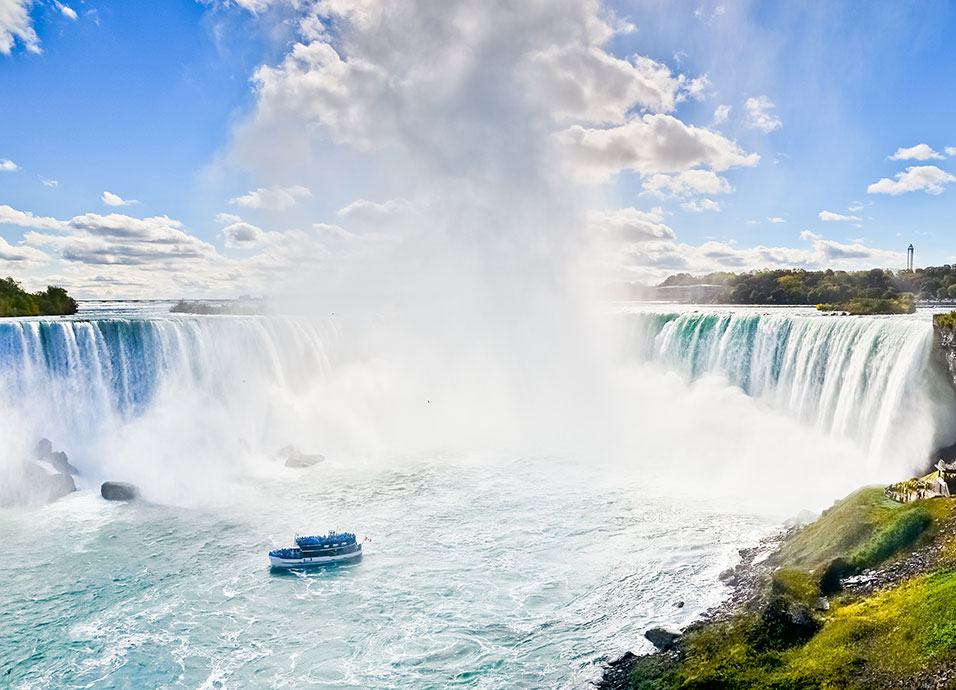 Desayuno. Visita panorámica de Toronto, capital de la provincia de Ontario. Parada fotográfica para admirar a la Torre CN, con sus 553 metros. Salida hacia Niágara on The Lake, conocido como el pueblo más bonito de Ontario, parada para recorrer la calle principal. Continuación a Niágara por el camino panorámico que bordea el río del mismo nombre. Aventura en el barco Hornblower y parada en el Table Rock para observar estas maravillosas cataratas. Continuación hacia el establecimiento. Alojamiento.