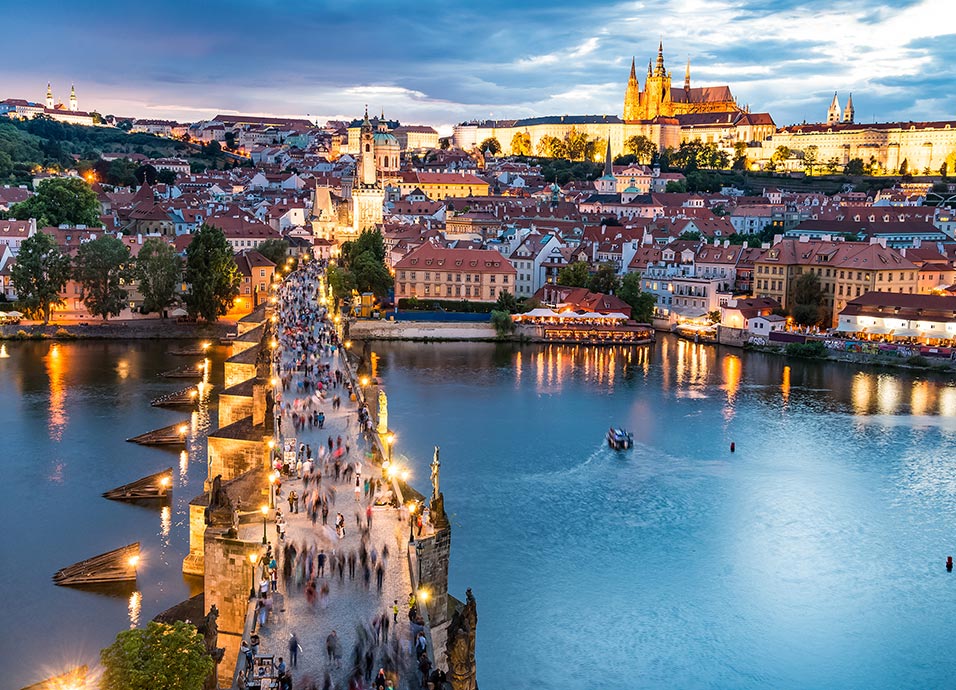 Desayuno. A primera hora de la mañana salida para realizar una visita a pie del Castillo de Praga incluyendo el antiguo Palacio Real, la basílica de San Jorge, el callejón del Oro, la catedral de San Vito. A continuación, descenso hacia Malá Strana (Ciudad Pequeña), zona en pendiente con vistas sobre el río Moldava y el casco antiguo. Visita a la Iglesia de Nuestra Señora de la Victoria, famosa por albergar al Niño Jesús de Praga, figura del siglo XVI a la que se atribuyen poderes milagrosos. Continuación por calles con hoteles, tabernas tradicionales y restaurantes, para llegar al Muro de John Lennon. La cercana zona de Kampa ofrece restaurantes de alta cocina y el Museo Franz Kafka. Muy cerca del Puente de Carlos se visita el pequeño y encantador Mercado de Navidad de Na Kampě, rodeado de edificios de colores. Cruce del histórico Puente de Carlos, adornado con estatuas de santos católicos y cuya construcción comenzó en 1357 bajo el rey Carlos IV. Almuerzo en un restaurante local. Continuación hacia la Plaza Havelská, donde se encuentra otro pequeño mercado navideño. Paseo hasta la Plaza de Wenceslao, centro comercial y administrativo de la ciudad y escenario de importantes acontecimientos históricos. Aquí se ubica el segundo gran mercado de Navidad, un mercado amplio que recorre toda la plaza, flanqueada por el Museo Nacional en un extremo y una zona comercial en el otro. Posteriormente, llegada a la Plaza de la Ciudad Vieja, donde se encuentra el mercado navideño más animado y famoso de Praga. El entorno, rodeado de edificios barrocos de colores, iglesias góticas y el Reloj Astronómico, es espectacular. En el centro se alza un gran árbol de Navidad, uno de los mayores de Europa, iluminado con cientos de luces durante una ceremonia especial con música y villancicos. Por la tarde se realizará un crucero con cena por el río Moldava en barco con techo de cristal recorriendo alguno de los monumentos más emblemáticos de la ciudad. Alojamiento.