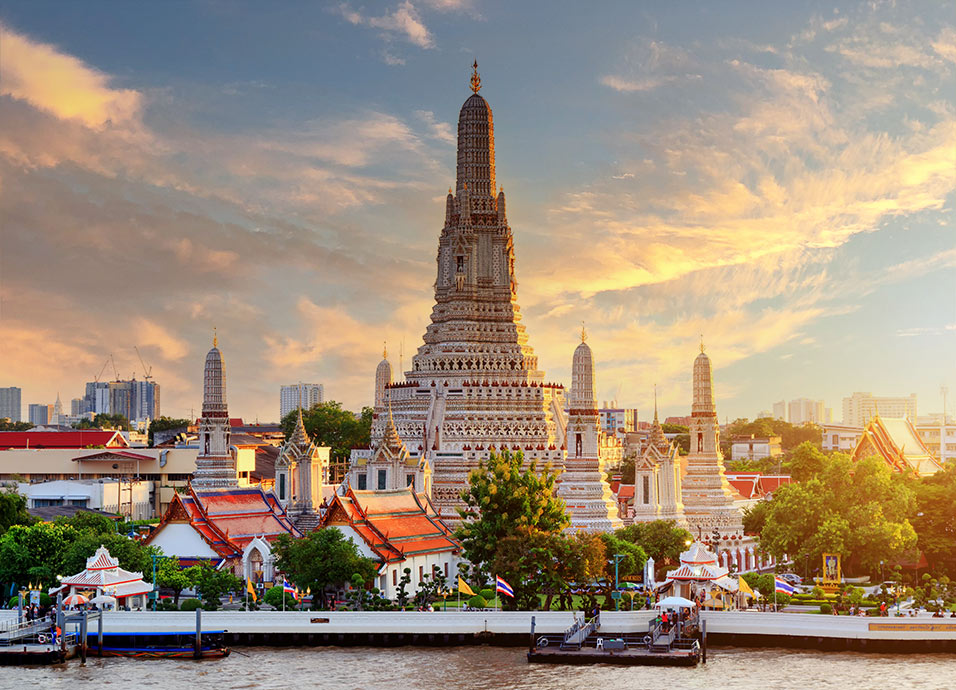 Desayuno en el hotel. Visita a tres de los templos budistas más populares de la ciudad. Empezaremos por el Wat Traimit, situado en el extremo de Chinatown, en Yaowarat Road, cerca de la estación de tren Hualampong. Wat Traimit alberga el Buda de oro más grande del mundo, midiendo casi cinco metros de altura con un peso de cinco toneladas y media. La excursión continuará hacia Wat Pho, el templo más grande de Bangkok. El templo del enorme Buda reclinado y los Chedis de los Reyes. Este se encuentra detrás del Templo del Buda. Es uno de los mayores templos de la ciudad y famoso por su gigantesco Buda reclinado que mide 46 metros de largo y está cubierto de oro. A continuación, visitarás el Palacio Real, que es sin duda, el monumento más famoso de la ciudad. Construido en 1782, por 150 años fue la casa del rey de Tailandia, la corte real y la sede administrativa del gobierno. El Gran Palacio de Bangkok es un edificio antiguo que continúa impresionando a sus visitantes por su hermosa arquitectura y detalles. Dentro del complejo, se encuentra Wat Phra Kaew o el Templo del Buda Esmeralda (oficialmente conocido como Wat Phra Sri Rattana Satsadaram), considerado como el templo budista más importante de Tailandia, consagra la imagen del Buda reverenciado por la gente tallado solo en un bloque de jade. Tarde libre a su disposición. Alojamiento en el hotel.