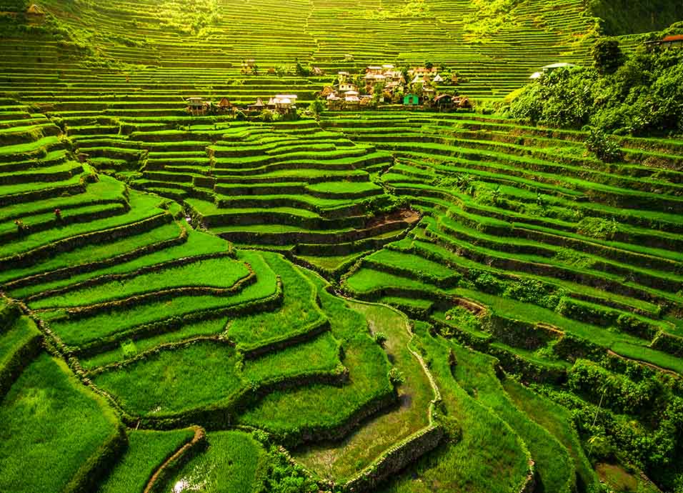 Desayuno. Salida en “jeepney” autobuses típicos filipinos para ver sus famosas terrazas de arroz, declaradas patrimonio de la Humanidad, con más de 2000 años de antiguedad, también se visitan algunas aldeas de campesinos para conocer su tradicional forma de vida. Cena y alojamiento.