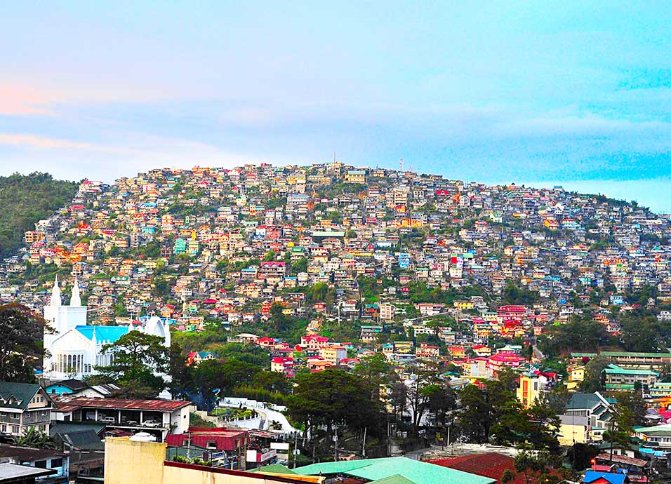 Desayuno. Salida hacia la provincia de Benguet, fértil región agrícola, y donde hoy se utiliza incluso un sistema de teleférico para transportar los productos agrícolas, atravesando los campos de fresas de La Trinidad se llega a Baguio city, por su altitud se la denomino la ciudad de verano, y aún conserva numerosos parques y casas solariegas. Cena y alojamiento en el hotel.