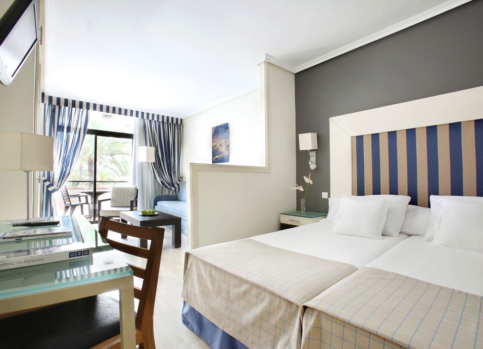 Alojamiento: 485 habitaciones con baño, aire acondicionado, caja fuerte, minibar y TV. Servicio Privilege: habitaciones superiores con vistas mar, posibilidad de dejar la habitación después de las 12:00 h (sujeto a disponibilidad), albornoz, zapatillas y amenities VIP, carta de almohadas, prensa diaria, obsequio de bienvenida, cafetera Nespresso, acceso gratuito al Despacio Thalasso Centre (mayores de 16 años), sala VIP, TV, internet y caja fuerte, terraza con jacuzzi y desayuno a la carta.