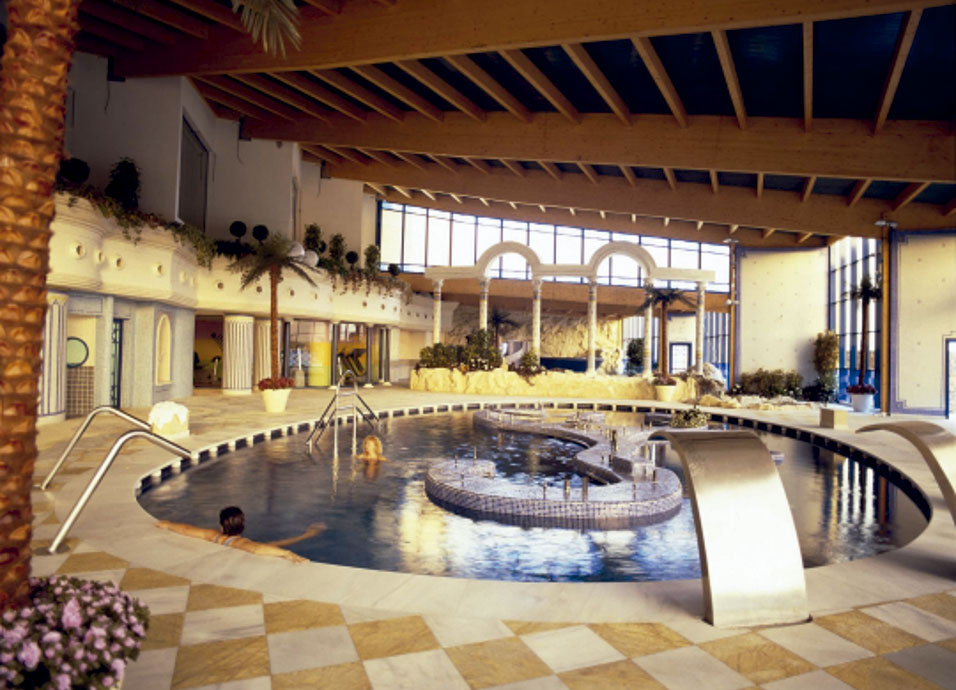 Instalaciones: 2 piscinas para adultos (1 de ellas climatizable) y piscina infantil. Jacuzzi exterior, sala de fitness, spa con piscina dinámica, sauna , baño turco, jacuzzi, sala de relax y cuatro cabinas de fisioterapia, una pista de tenis y una pista multiusos, petanca, tiro con arco y minigolf. Restaurante principal buffet, bar-salón-espectáculos, piano-bar, bar restaurante en la piscina, centro de Thalassoterapia y Wi-FI.