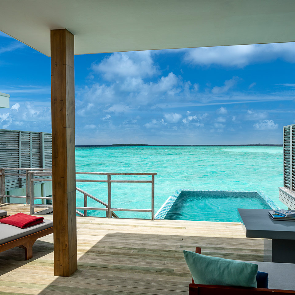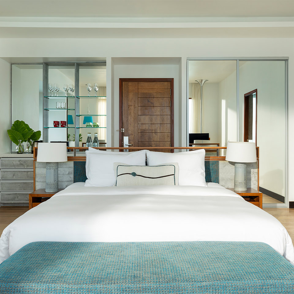 Alojamiento: 20 Beach Bungalows, 27 Deluxe Beach Bungalows, 24 Water Villas, 52 Beach Villas, 19 Beach Villas con Piscina, 2 Beach Villas con piscina en el jardín, 16 Lagoon Villas con Piscina, 2 Beach Suites con Piscina, 1 Beach Suite con piscina en el jardín, 3 Two Bedrooms Deluxe Beach Bungalows, 5 Two Bedrooms beach Villas y 1 Two Bedrooms Dhigali Suite. Todas las villas cuentan con interiores minimalistas con líneas sencillas, caja fuerte, minibar, TV LCD, conectividad de audio, facilidades para té/café; y cafetera de cápsulas (en las villas con piscina), etc.