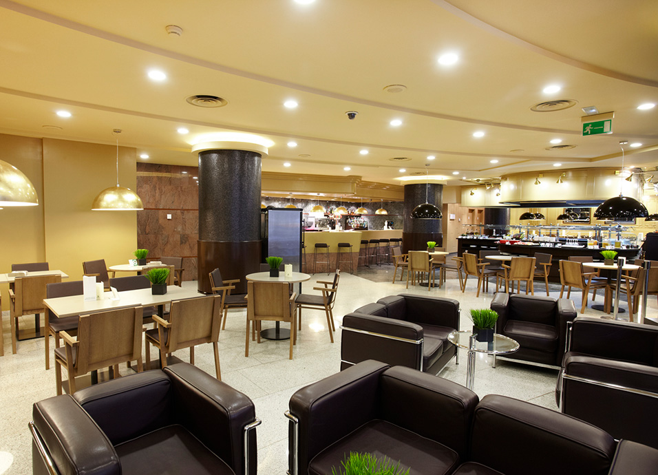 Instalaciones: restaurante buffet, cafetería, salones sociales, salones de congresos y convenciones, fitness center (gimnasio, sauna, baño turco, piscina y jacuzzi) y aparcamiento.