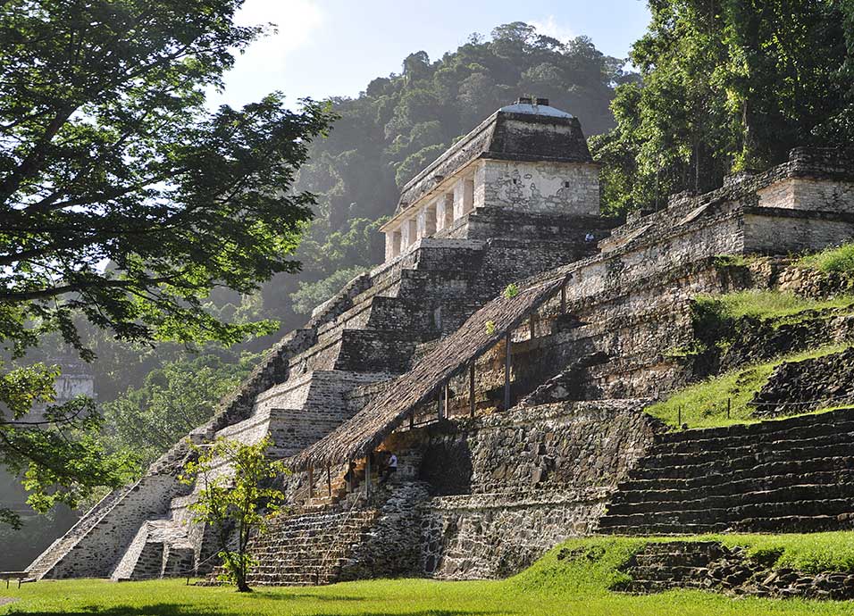 Desayuno. Por la mañana salida hacia la zona arqueológica de Palenque ubicada dentro de la jungla Chiapaneca. Este sitio arqueológico destaca porque ofrece en piedra y estuco las bellas realizaciones de la plástica maya, y está considerada como una de las más bellas zonas arqueológicas de México. De entre todos sus templos el más importante es el llamado Templo de las Inscripciones donde fue descubierta la tumba de Pakal, con su famosa máscara de jade. Una vez finalizada la visita salida hacia Campeche, almuerzo en ruta. Llegada y breve visita de la antigua ciudad fortificada. Alojamiento.