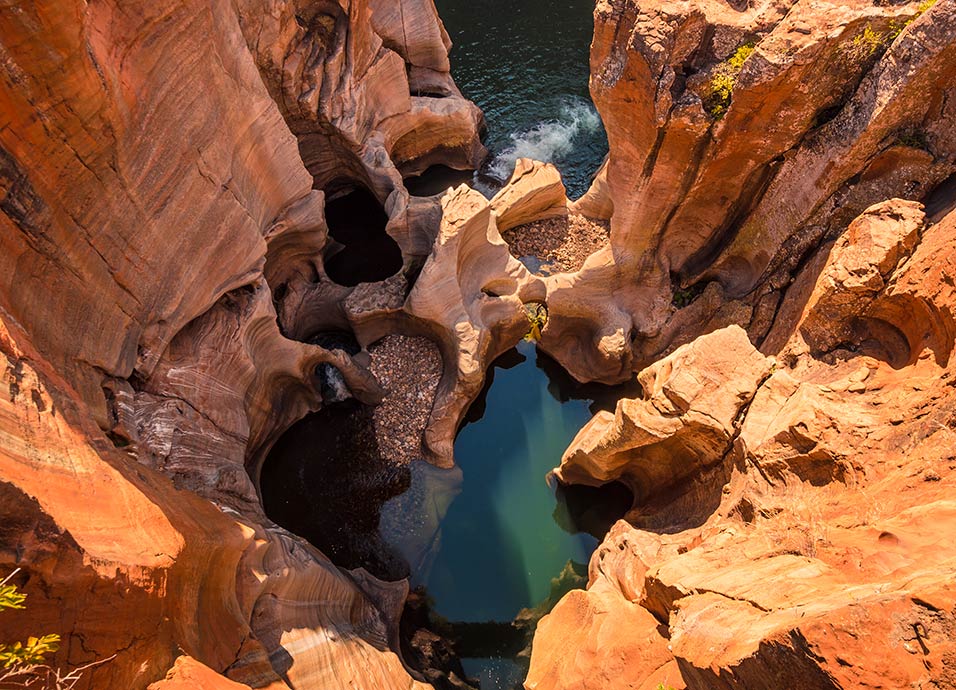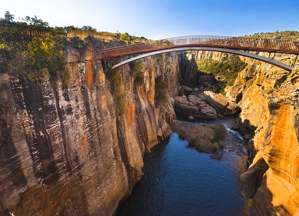 Desayuno. Salida (a las 07:00 hrs.) hacia el Parque Kruger atravesando la provincia de Mpumalanga, y visitando lugares de impresionante belleza como: Bourke’s Luck Potholes en el Cañón del Río Blyde (visitas sujetas a disponibilidad de tiempo y condiciones meteorológicas). Llegada por la tarde al lodge. Cena y alojamiento.