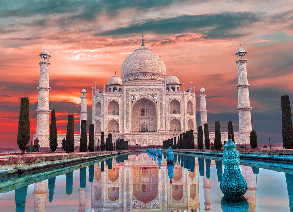 Por la mañana, visita temprano del mítico Taj Mahal: El Taj Mahal construido por el emperador mogol Shah Jahan en 1631. Regreso al hotel para desayuno y después un paseo en la vieja Agra y sus callejones escondidos repletos de vida. Visita del fuerte de Agra, trono y baluarte de sucesivas generaciones del imperio mogol. Almuerzo en el restaurante local. Tarde libre. Cena y alojamiento.