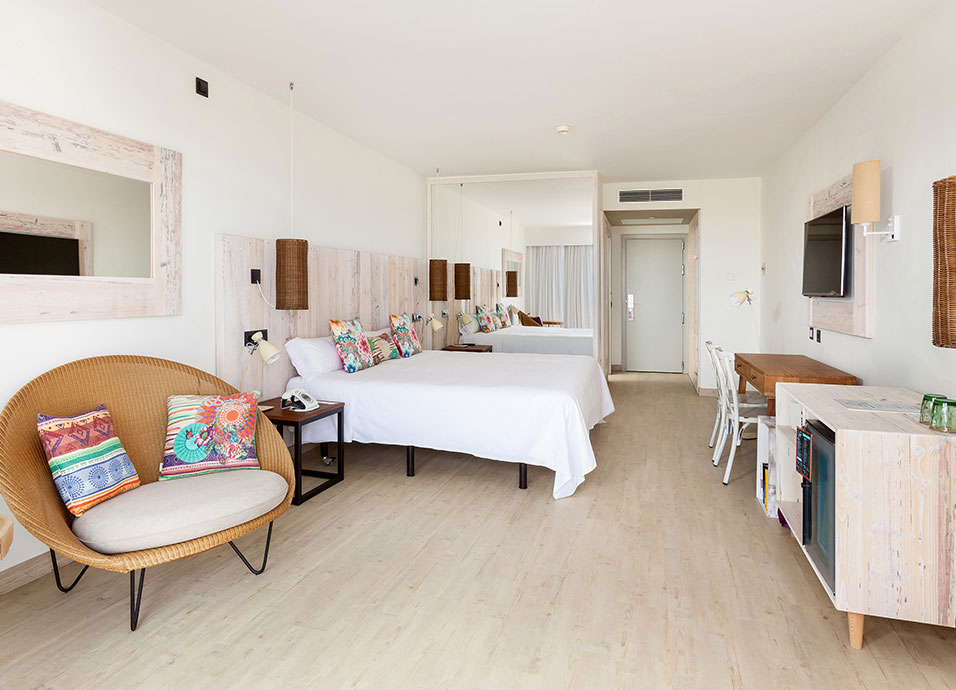 Alojamiento: 142 habitaciones Innside Vista mar, con baño con ducha, TV, Wi-Fi, aire acondicionado, minibar y un balcón acristalado y amueblado. Las habitaciones junior suite Beach House disponen además, de Smart TV de 42” y Sound Kick con Bluetooth para el móvil, minibar de bienvenida (2 aguas, 4 zumos y 2 cervezas), cafetera de cápsulas.