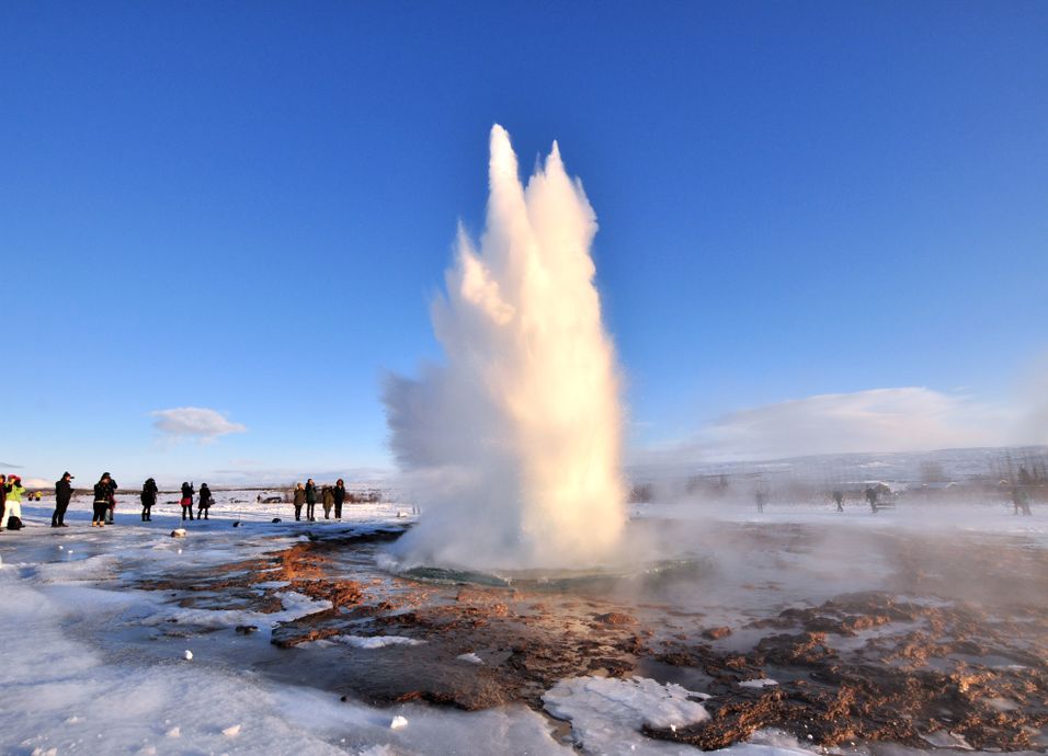 Desayuno. Salida hacia el Parque Nacional de Pingvellir “la llanura del parlamento”, donde se reunía el antiguo parlamento islandés a orillasdel lago más grande de Islandia, Pingvallavatn. Continuación del recorrido hacia la zona geotérmica de Geysir con su géiser activo Strokkur, finalización de la visita en una de las cascadas más hermosas de Islandia, Gulfoss, conocida como “la cascada dorada”. Cena y alojamiento.