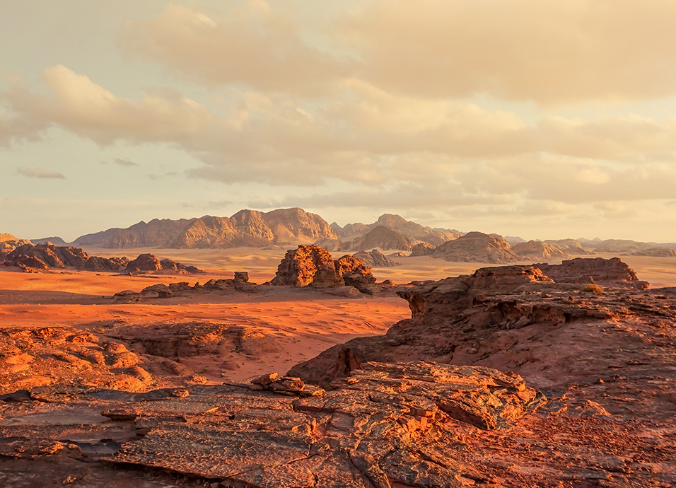 Desayuno. Salida hacia Wadi Rum, también conocido como el valle de la luna, famoso por su belleza natural, su historia beduina y por ser escenario de películas como Lawrence de Arabia y The Martian. Excursión en vehículos 4x. Recorrido de aproximadamente 2 hrs de paisajes impresionantes con montañas de rocas, dunas rojizas y cañones estrechos. Disfrutaremos de un te beduino en medio de este paisaje lunar. Traslado hacia el campamento. Cena y alojamiento.