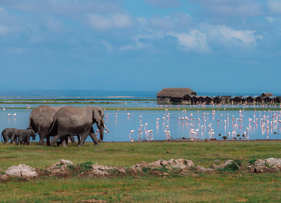 Desayuno. Salida temprana hacia P. N. de Amboseli vía Namanga/Emali. Llegada y almuerzo en el lodge. Por la tarde, salida de safari fotográfico por el parque, situado a los pies del Monte Kilimanjaro y su majestuosa cumbre de nieves perpetuas, y aunque pertenece a Tanzania, ofrece su mejor vista desde Amboseli en días claros. Regreso al lodge, cena y alojamiento.