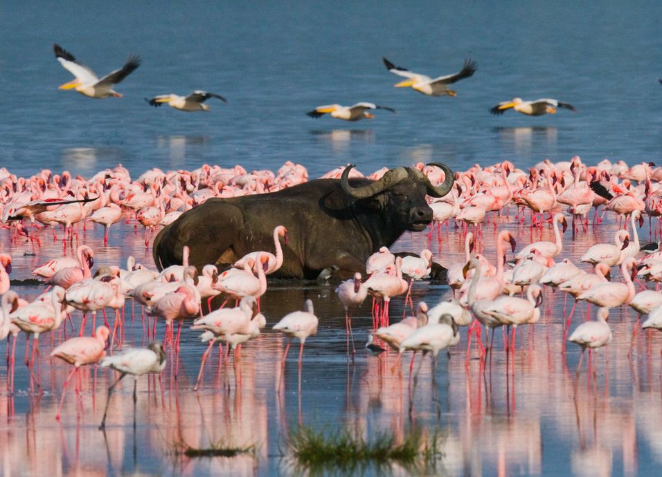 Desayuno. Salida hacia el P.N. del Lago Nakuru. Almuerzo en el lodge. Por la tarde, safari fotográfico bordeando el lago, uno de los paraísos ornitológicos del mundo. Rodeado por bosques de acacias de tronco amarillo y euforbias, alberga más de 450 especies de aves y diversas familias de mamíferos. Pero lo más conocido de este pequeño lago son los flamencos rosados que en ciertas temporadas superan el millón de ejemplares. Es también el parque del este de África con mayor concentración de rinocerontes, y quizás en el único lugar que todavía se puede ver el rinoceronte blanco. Cena y alojamiento.