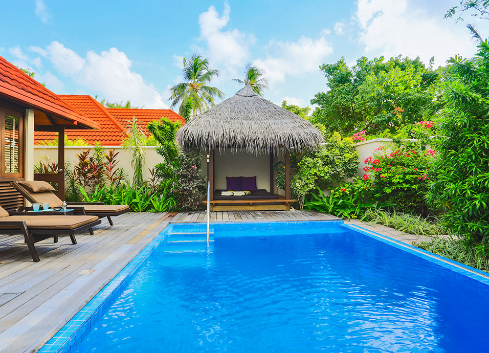 Alojamiento: cuenta con 180 habitaciones: 38 habitaciones superiores, 72 bungalows deluxe, 34 bungalows beachfront deluxe, 8 garden pool villas, 6 beach villas, 17 deluxe pool villas, 4 Family villas y 1 Two Bedroom Kurumba Residence; todas ellas con aire acondicionado, TV, minibar, facilidades para té/café y caja fuerte.