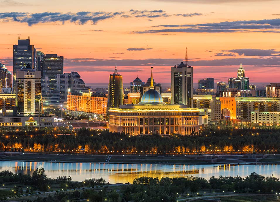 Desayuno en el hotel. Visita de la capital de Kazaistan, considerada por la UNESCO como “Ciudad del Mundo”.Se inicia con la visita al Museo Nacional de Kazajistán con su famosa colección del "hombre de oro", despues pasamos por la Plaza de la Independencia donde se puede ver un plano general del Palacio de la Paz y Acuerdo, un edificio en forma de pirámide, diseñado por el famoso arquitecto Norman Foster. visita de la Mezquita de Hazret Sultan mez, la mas grande de Asia Central. Almuerzo en un restaurante local. Continuación con la visita de la Torre Baiterek, el símbolo de la nueva capital de Kazajistán. Paseo por Boulevard Nurzhol y pasamos por Plaza Redonda, en el fin del paseo, se visitael Khan Shatyr, el centro del comercio y ocio, tiempo libre. Alojamiento.