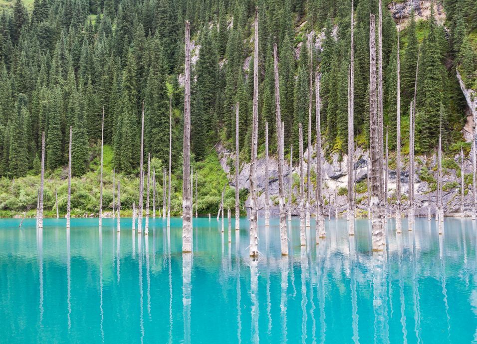 Desayuno. Salida en 4x4 con destino “Lagos de Kolsay” .Almuerzo en casa local con una familia kazaja. Continuación al lago Kaindy, un idílico lago de montaña que se formó después de un terremoto en 1911, lo que causó un gran deslizamiento de tierras, creando un dique natural. Sucesivamente, el agua de lluvia llenó el valle y creó el lago. El lago es famoso por la cantidad de abetos muertos y blanqueados que salen del agua. Los árboles, junto con el agua color turquesa, hacen de él un espectáculo increíble. La imaginación es aún más impresionante, ya que los árboles no se han descompuesto y crean una visión surrealista de un bosque bajo el agua. Llegada al eco hotel y alojamiento.