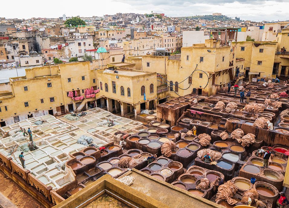 Desayuno. Visita de Fes, la ciudad imperial más antigua. Visita del mellah (judería), la medina, el exterior de la mezquita, visita a la medersa (escuela coránica) Al Boaunania y de la universidad El Karaouine. Almuerzo en restaurante típico de la medina. Visita externa de la mezquita de El Andalous y de la tumba de Moulay Idriss así como vista panorámica de la ciudad. Cena y alojamiento.