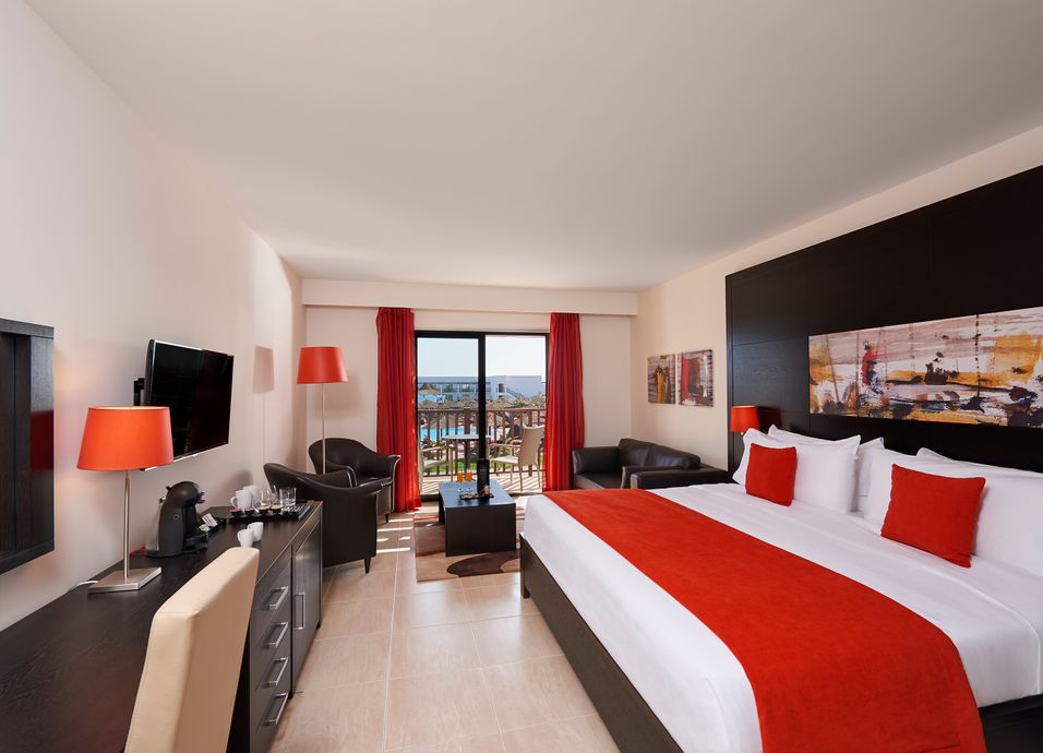 Habitaciones: Habitaciones Deluxe: Un total de 141 habitaciones de 40m2 aprox. Habitación doble con cama doble. Baño y Balcón equipado con mini nevera. Capacidad máxima 2 adultos. Habitaciones Deluxe con jardín privado: Un total de 67 habitaciones de 40m2 + 20m2 de jardín privado aprox. Planta baja. Habitación doble con cama doble. Baño y terraza equipado con mini nevera. Capacidad máxima 2 adultos. Habitaciones The Level Deluxe: Un total de 12 habitaciones de 40m2 aprox. Habitación doble con cama doble. Baño y terraza equipado con mini nevera. Capacidad máxima 2 adultos. Habitaciones The level Deluxe Océano Frontal:Un total de 10 habitaciones de 42m2 aprox. Planta alta. Habitación doble con cama doble. Baño y terraza equipado con mini nevera. Capacidad máxima 2 adultos. Habitaciones The level Deluxe Océano Frontal con Jacuzzi: Un total de 10 habitaciones de 42m2 aprox. + 20m2 de jardín. Planta baja, Jacuzzi en el jardín. Habitación doble con cama doble. Baño y terraza equipado con mini nevera. Capacidad máxima 2 adultos. Habitaciones The Level Swim-up: Un total de 40 habitaciones de 48m2 aprox. Planta baja con acceso directo a la piscina. Habitación doble con cama doble. Baño y terraza equipado con mini nevera. Capacidad máxima 2 adultos. Junior Suites The Level Dúplex: Un total de 22 habitaciones de 72m2 aprox. Disponen de dos niveles. Planta baja y alta. Una habitación doble y sala de estar. Baño y balcón equipado con mini nevera. Capacidad máxima 2 adultos. Gran Suite The Level: Un total de 1 habitación de 110m2 aprox. + 20m2 de terraza. 2 dormitorios y sala de estar. Baño y terraza equipada con mini nevera. Capacidad máxima 4 adultos.
