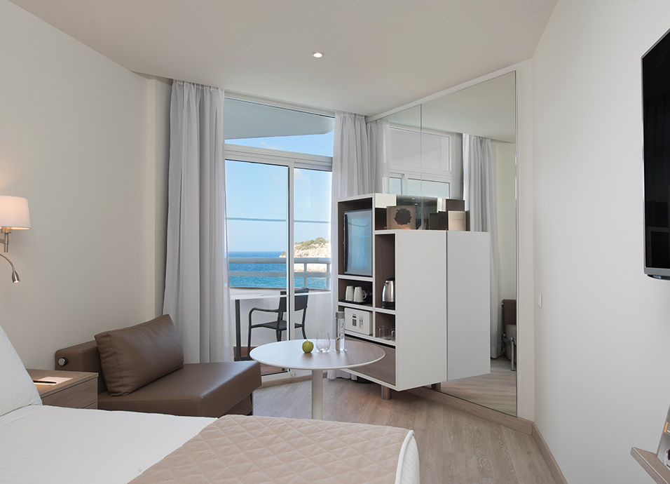 Alojamiento: habitaciones con vistas laterales y frontales a la playa, ducha efecto lluvia, aire acondicionado, amenities de Rituals (bajo petición), Wi-Fi y terraza. Las habitaciones The Level, con la mejor ubicación y amenities Rituals (bajo petición), cafetera Nespresso con reposición diaria de cápsulas y muchos más beneficios.