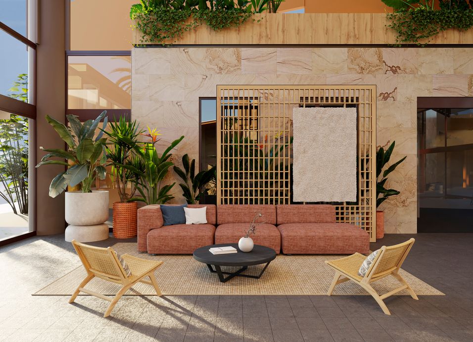 Situación: hotel de arquitectura única con 12.000 m2 de jardines endémicos y terrazas, a 1 Km de Playa del Duque.