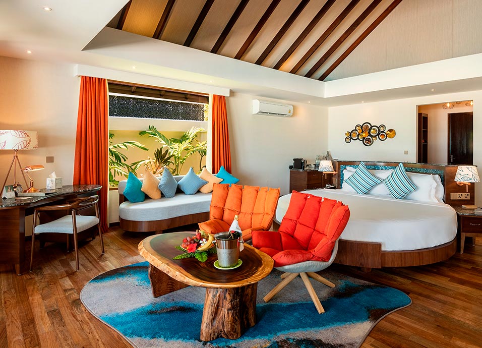Alojamiento: la extensa isla de Kanifushi, con dos kilómetros de laguna turquesa en la que se encuentran repartidas tanto Beach Villas como Water Villas. El resort cuenta con dos nuevas categorías de habitación, las Kanifushi Grand Pool Villas y las Kanifushi Residence, estas últimas con capacidad de alojar hasta 7 personas en un amplio espacio de 600m2. Todas cuentan con aire acondicionado, ventilador de techo, caja fuerte, minibar y facilidades para hacer té/café.