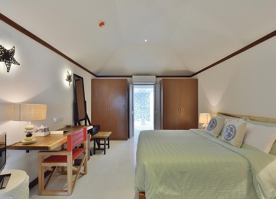 Alojamiento: con sus 152 villas, aúna gastronomía con actividades acuáticas y bienestar, manteniendo la estética natural de la exuberante y verde isla. Todas cuentan con aire acondicionado, ventilador de techo, caja fuerte, TV y facilidades para hacer té/café.
