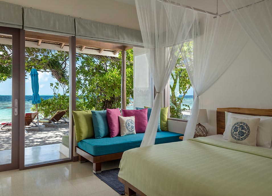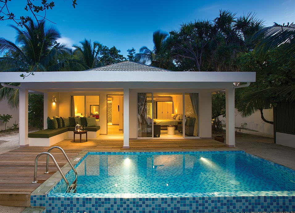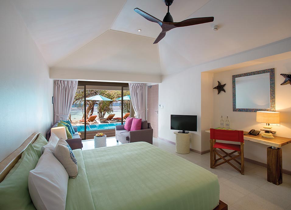 Alojamiento: con sus 152 villas, aúna gastronomía con actividades acuáticas y bienestar, manteniendo la estética natural de la exuberante y verde isla. Todas cuentan con aire acondicionado, ventilador de techo, caja fuerte, TV y facilidades para hacer té/café.