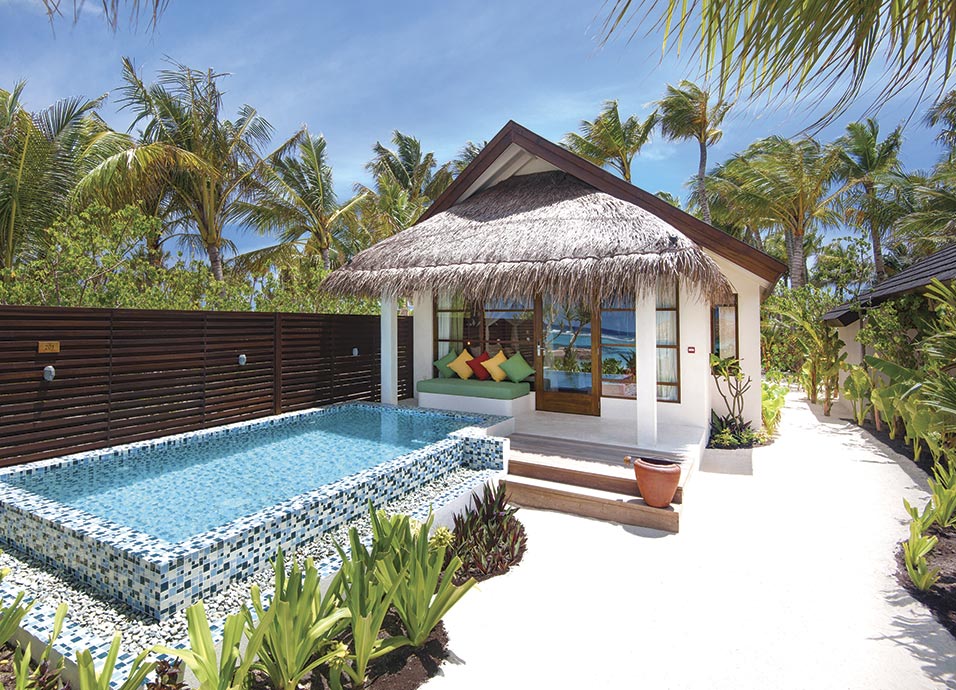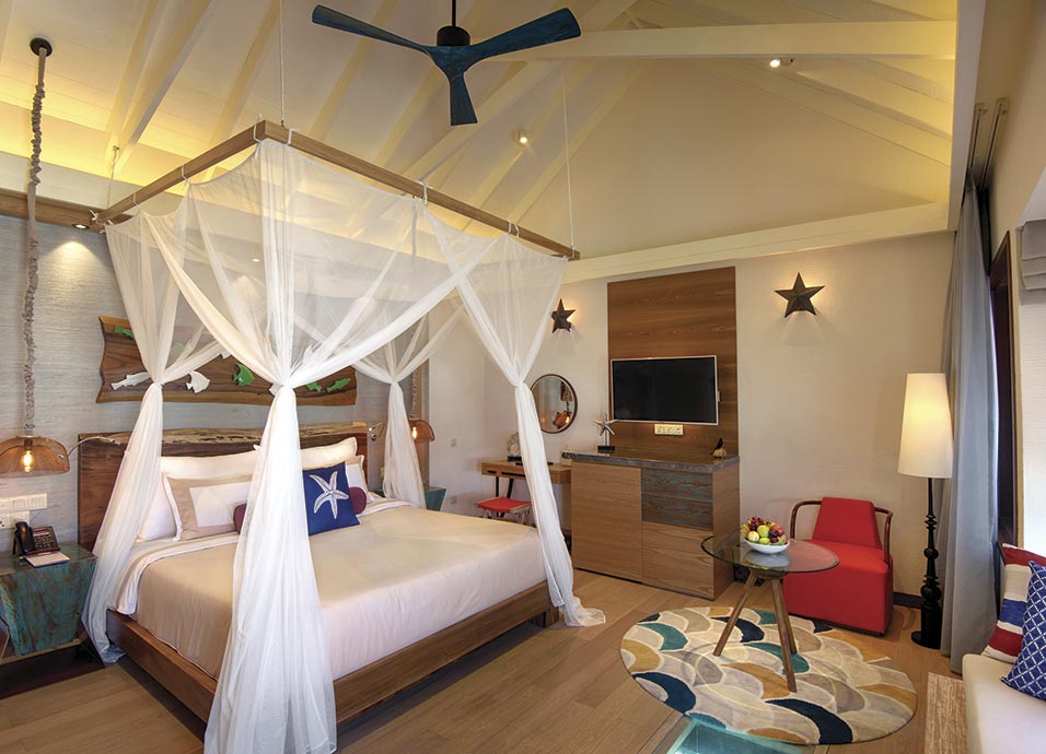 Alojamiento: cuenta con una gran variedad de villas y suites de diseño contemporáneo tanto en playa como sobre el agua (con y sin piscina), en total 137 villas. Todas con aire acondicionado, ventilador de techo, caja fuerte, TV, minibar, Wi-Fi y facilidades para hace té/café.