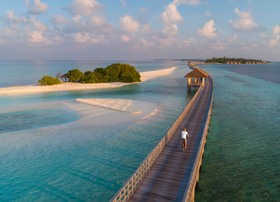 Situación: en Gaafu Alifu, uno de los atolones más grandes y profundos del mundo. Se accede en vuelo regular de 55 minutos seguido de 5 minutos en lancha rápida. Conectado por un puente privado de un kilómetro a su complejo hermano The Residence Maldives en Falhumaafushi.