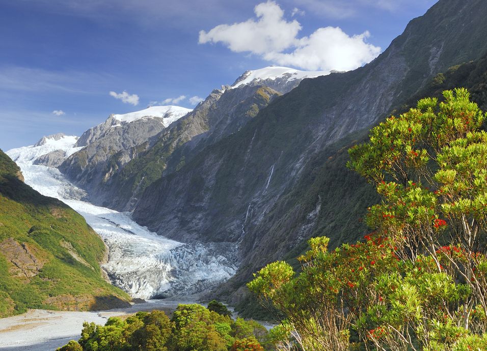 Salida por la escarpada costa oeste hasta Punakaiki donde se encuentran las Punaikaiki Pancake Rocks y Blowholes y continuación hasta Franz Josef por la costa. Alojamiento.