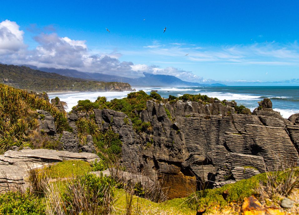 Salida hacia el norte por la costa oeste hasta Hokitika y greymouth. Greymouth es el principal centro comercial de la costa oeste. La ciudad es un puerto fluvial y fue fundada sobre la búsqueda de oro y continuó con el carbón. Ahora, sin embargo, el principal comercio es la madera, ovejas y ganado vacuno. Punakaiki es la puerta de entrada al Parque Nacional Paparoa. Las Pancake Rocks por las que Punakaiki es famoso, son formaciones de piedra caliza que comenzaron a formarse hace 30 millones de años. Es una zona donde se pueden realizar paseos en canoa, caminatas a caballo o a pie y espeleología.
