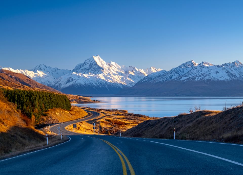 Salida de Christchurch hacia el sur por la carretera estatal 1 hacia Rangitata. Desde escuchar unirse a la carretera estatal 79 y viajar a través de Geraldine a Fairlie. Al salir de Fairlie, se unirá a la carretera estatal 8 a través del lago Tekapo hasta su destino Twizel. Durante el trayecto, es posible que desee visitar Mount Cook tomando la carretera estatal 80 antes de llegar a Twizel. MOUNT COOK - cuyo nombre maorí "Aorangi" significa "Perforador de nubes" tiene unos 3753,5 metros de altura y está rodeado por una gran cantidad de cumbres. El Monte Cook es la montaña más alta de Nueva Zelanda, y puede a menudo estar rodeado de nubes por su clima alpino.