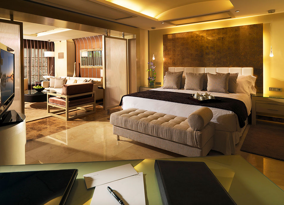 Alojamiento: 90 habitaciones con y sin jacuzzi en la terraza y 5 exclusivas villas privadas. Habitaciones con baño, ducha de jet de chorros tipo spa europeo, aire acondicionado, TV, cafetera Nespresso, Wi-Fi, radio despertador con ajuste para IPOD o IPHONE, sofá cama y terraza o balcón privado. Las villas disponen de baño con jacuzzi, salón, área de cenador en el jardín, piscina privada, servicio de mayordomía y Wi-Fi.