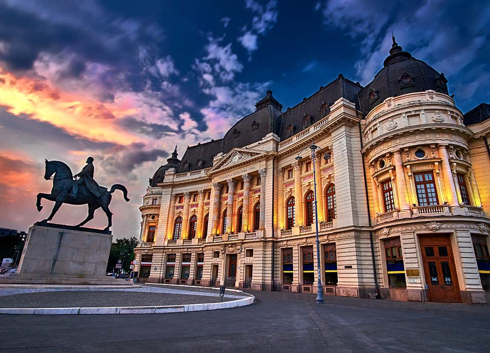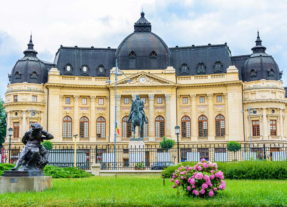 Desayuno. Salida hacia Sinaia, la “perla de los Cárpatos”; visita al castillo de Peles, antigua residencia de verano de la familia real. Continuación a Bucarest. Almuerzo. Por la tarde, visita de la capital rumana y admirando edificios como el Auditorio Rumano, la plaza de la Revolución o el Arco del Triunfo. Continuación de la visita a pie conociendo la parte antigua: Patriarchia (centro espiritual de la iglesia ortodoxa rumana), la iglesia de Stavropoleos y el Palacio del Parlamento. Cena en restaurante con bebidas y con espectáculo folclórico. Alojamiento.