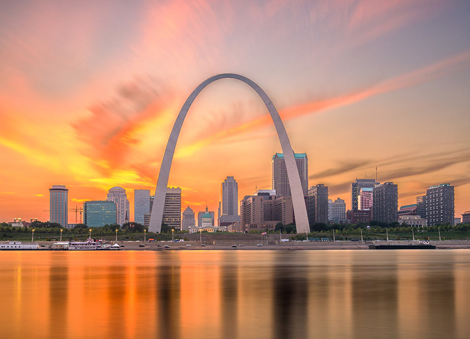 Salida en moto de alquiler para adentrarse en el estado de Missouri. Antes de llegar a Sant Louis, una parada obligatoria es el puente Old Chain of Rocks, ahora peatonal, por donde transcurría la Ruta 66, y uno de los puentes metálicos más largos del país. Alojamiento.