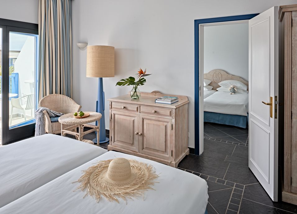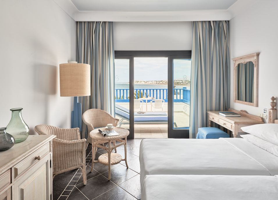 Alojamiento: 530 habitaciones con baño completo, secador de pelo, espejo de aumento, aire acondicionado, teléfono, Wi-Fi, caja fuerte; hervidor de agua con servicio de té y café, TV y balcón o terraza. Las habitaciones dobles se encuentran en la planta baja y tienen vista limitada. Las habitaciones dobles superiores ofrecen vistas al jardín, a la piscina o al mar. El hotel dispone de 6 habitaciones para discapacitados. Las habitaciones familiares tienen un dormitorio con zona de estar, con vistas al paisaje interior o al mar.