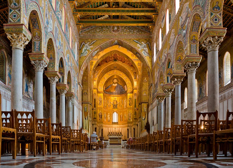 Desayuno. Salida hacia Monreale y visita del Claustro Benedictino y de la Catedral. Regreso a Palermo y breve visita panorámica. Almuerzo. Por la tarde paseo por el centro histórico de la capital siciliana: la Capilla Palatina, la Catedral, la famosa Plaza Pretoria, , los Quattro Canti y sus palacios barrocos, la Iglesia normanda de la Martorana y entrarás en la Iglesia de Santa Caterina. Alojamiento.