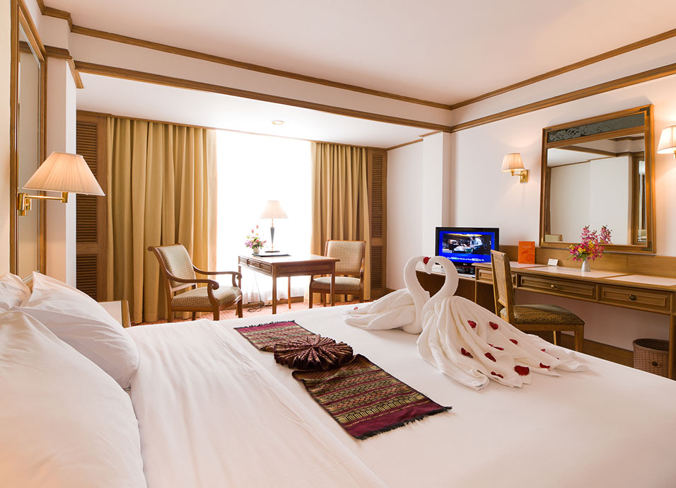 Situación: localizado en la zona de negocios y comercial de la ciudad, frente al mercadillo de Patpong, se compone de dos edificios.