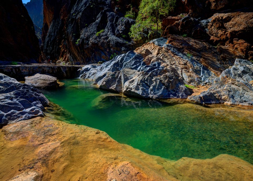 Desayuno en el hotel. Sugerencia de itinerario: Pare para sacar fotos a Wadi Shab. El agua dulce que cae en cascada desde la cima de las montañas se encuentra con el agua salada del mar en sus orillas, creando una diversidad ambiental única para este wadi, y haciéndola pararse sobre un pedestal en comparación con los otros wadis (valles) en el Sultanato. Pare en Bimmah Sinkhole, una profunda depresión natural llena de agua. Los lugareños dicen que un meteorito cayó en este lugar, lo que provocó la depresión natural y formó un pequeño lago. Alojamiento en el hotel de Muscat.